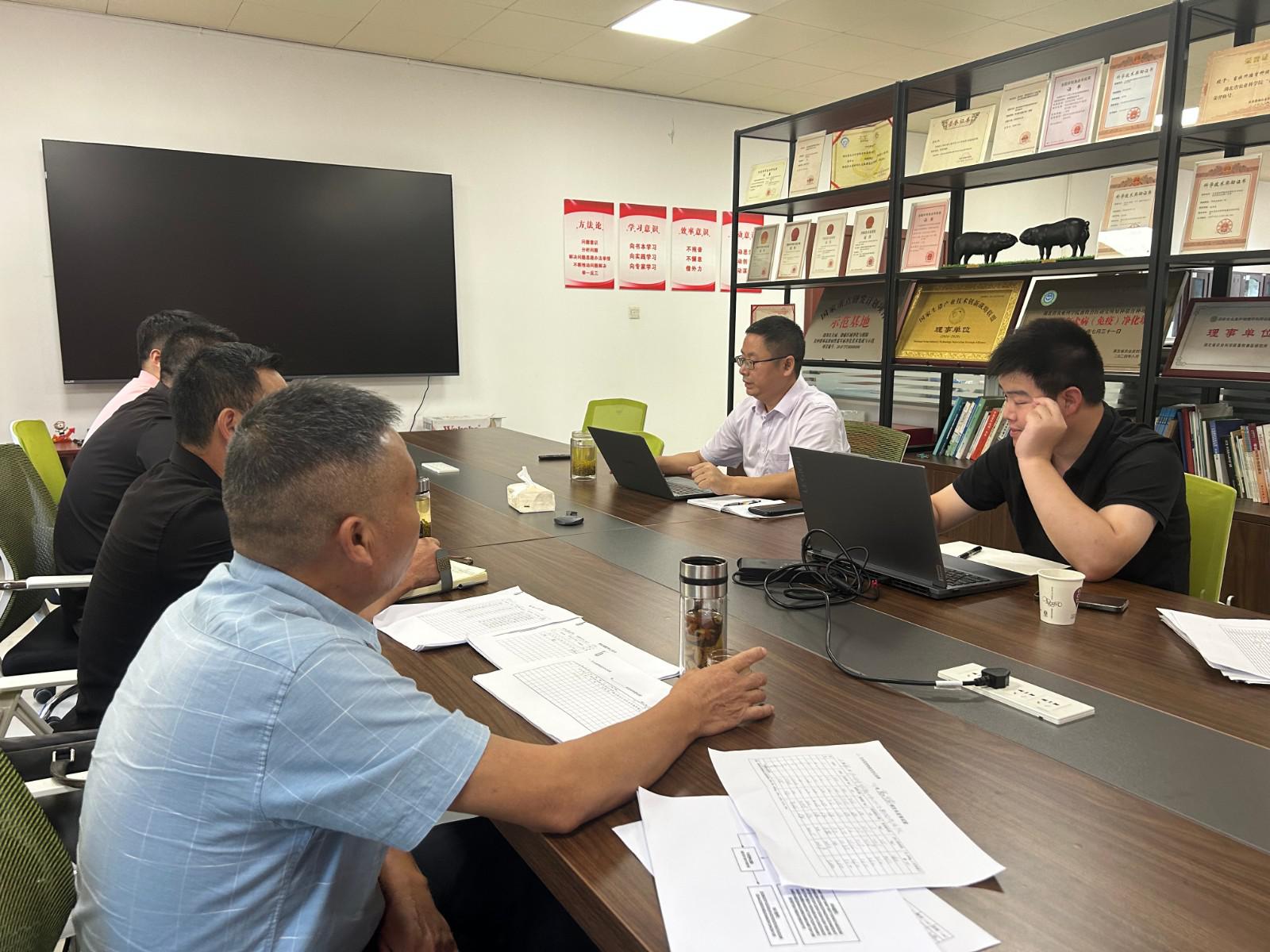 7月24日,院畜牧兽医研究所负责人刘金波带领团队成员赴省农科院畜牧兽医研究所开展汇报交流工作,畜牧团队就近期开展“襄阳黑猪”品种资源保护工作,包括品种历史溯源、绘制家族系谱图、整理生产档案、测定生产性能等工作、省“515”生猪协同推广工作以及枣阳市现代农业产业园创建相关工作进行了汇报。省农科院畜牧兽医研究所生猪团队负责人彭先文对目前“襄阳黑猪”品种资源保护已整理的相关材料进行了审阅并提出修改完善材料的指导建议,同时提出了下一步工作要求:省“515”协同推广行动按照时间节点要求完成各项推广工作任务;枣阳现代农业产业园创建工作按照已制定的实施方案推进落实相关工作。