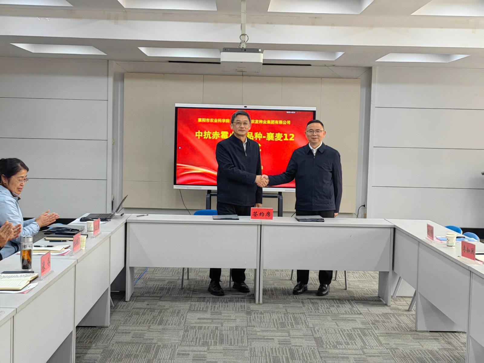 10月23日,襄阳市农业科学院与湖北农发种业集团有限公司举行“襄麦12”品种转化签约仪式。湖北农发种业集团董事长陈三才、副总经理张早林,我院院长凌冬、副院长田永宏等出席签约仪式,活动由副院长田永宏主持。