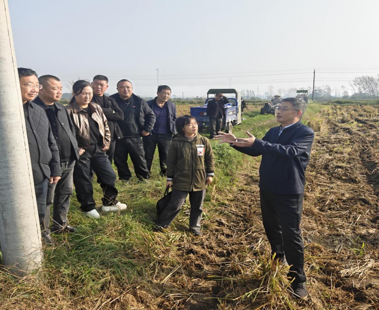 2025年11月5日,襄阳市农业科学院院长凌冬带领生物技术实验室团队,在宜城市郑集镇成功举办了小麦免耕带旋播种机抗湿机械条播技术现场示范活动。宜城市农业技术推广中心技术人员及当地种植大户齐聚一堂,共同观摩了这场贴近生产需求的农技推广活动。