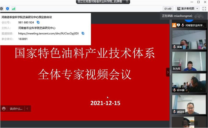 芝麻团队参加国家特色油料产业体系体系视频会议