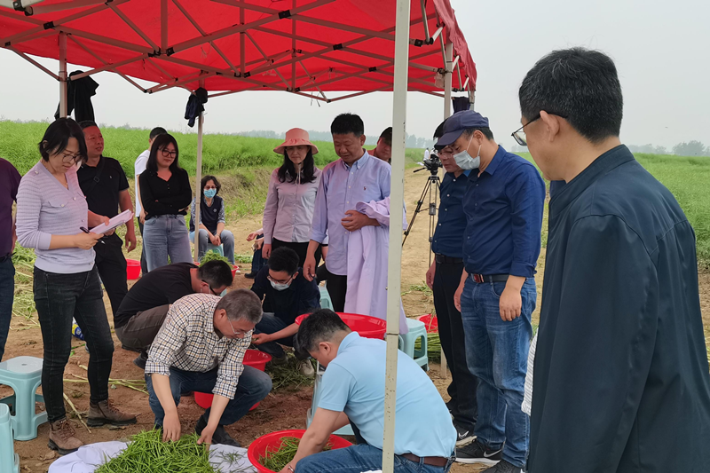 4月24日,由西南大学、华中农业大学、湖北省农业农村厅等单位权威专家组成的测产专家组对在我院襄州区石桥镇油菜示范基地种植的油菜新品种“中油杂501”进行了现场预测产。4月25日,会议代表到示范基地进行了现场观摩,我院油菜科研人员对项目执行情况作了详细介绍。与会专家对我院高质量完成该项目栽培试验示范任务给予肯定。在随后的推进会上,测产专家组组长、西南大学教授李加纳公布了测产结果,油菜新品种“中油杂501”理论产量高达419.95公斤/亩,刷新了长江流域油菜高产记录,标志着我国油菜产业绿色革命核心技术获重大突破。李培武院士表示,通过现场观摩,“中油杂501”植株在栽培中表现出“三均衡、一封顶”的优点,在高产上有很大潜力,具有很高推广价值。他对该项创新工程重大任务取得的突破表示祝贺。