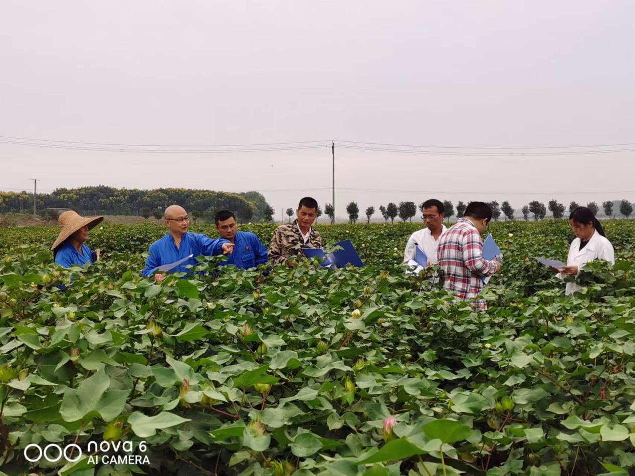 本网(彭亚博 黄桂兰)讯 9月22日,由湖北省种子管理局组织的棉花品种区域试验考察组专家莅临我院泉水堰基地,对我院承担的2022年度省棉花品种试验及国家棉花品种区试襄阳试点的实施和执行情况进行了现场考察。在听取了团队负责人付永红同志的简单介绍后,专家组一行深入田间,仔细查看各试验完成质量和参试品种的田间表现,对我院克服超长超强高温干旱天气,及时开展抗旱保丰收和精细田管,有效保证各参试品种固有特征特性在襄阳地区充分展现等工作给予充分肯定。专家组建议,后期要及时做好分类收获、轧花考种、数据整理和报告提交等工作,确保试验任务圆满完成。