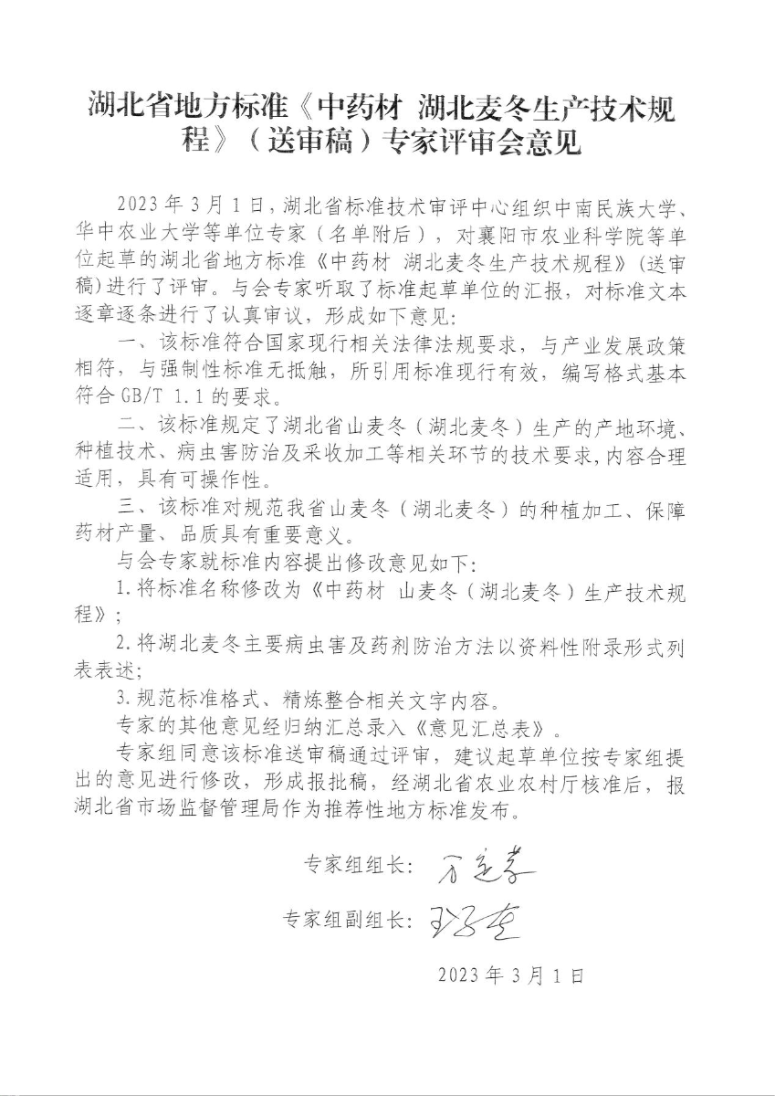 我院牵头制定的湖北麦冬省地方标准专家评审会通过