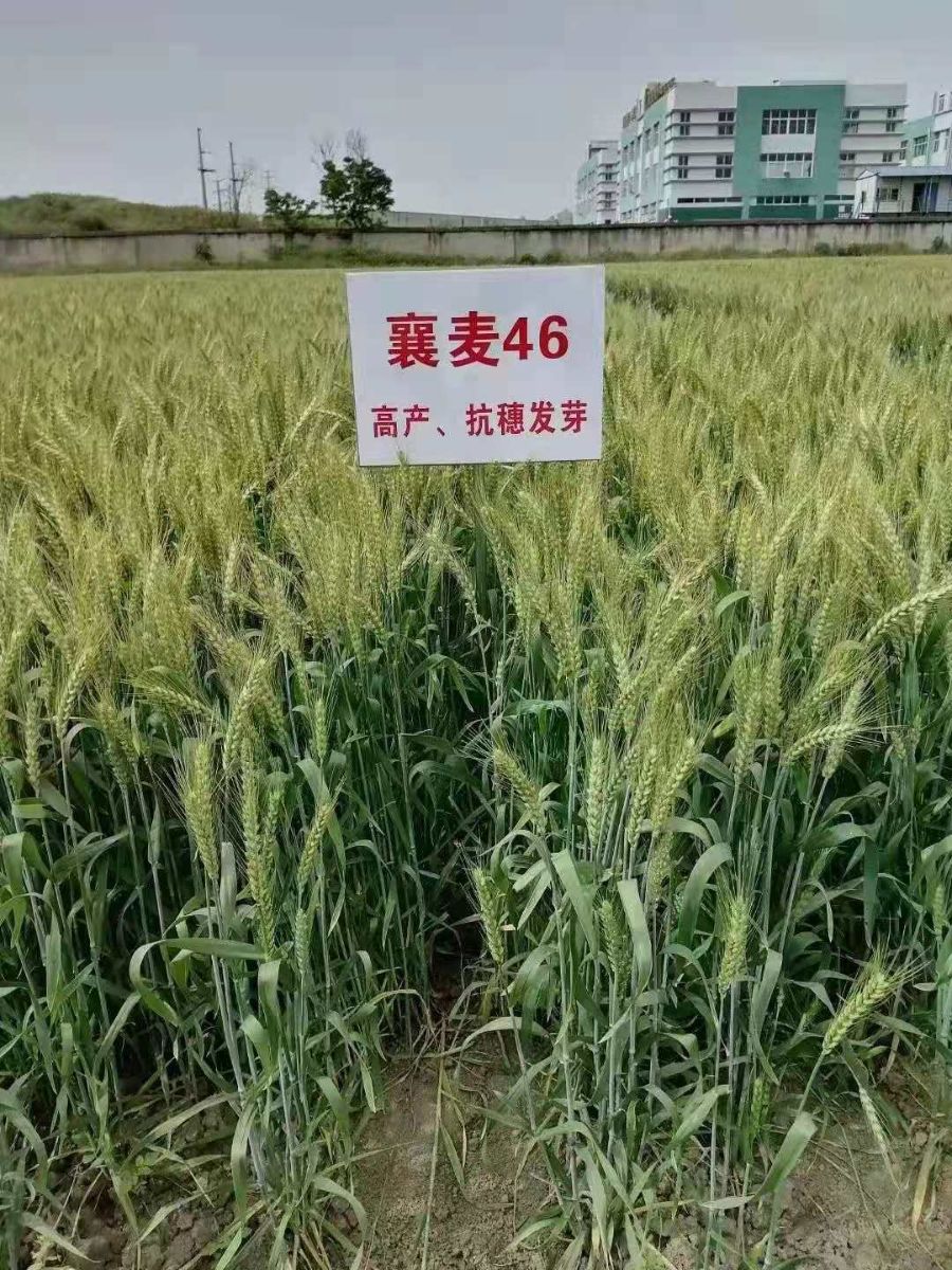 襄麦46是我院第一个也是湖北省近20年来首个通过国审的小麦品种。该品种突出特点:矮秆抗倒伏、广适、高产、高抗穗发芽。该品种,弱春性,株型较松散,株高76.4厘米,抗倒性较强,穗层整齐,熟相好。红粒,籽粒半角质。经江苏省农科院鉴定,高抗穗发芽,穗发芽率仅为0.5%,慢条锈病,中抗叶锈病,中感赤霉病,和白粉病,高感纹枯病。