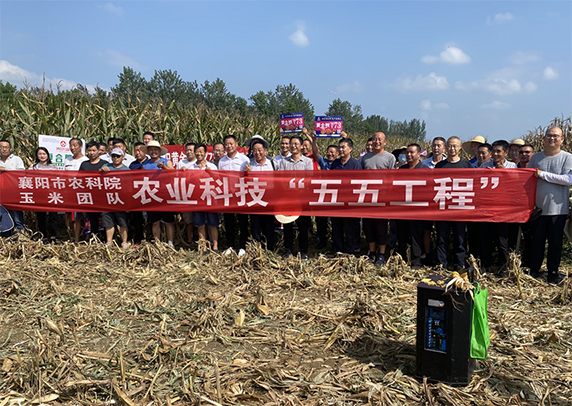玉米是我市第三大粮食作物,为服务本地玉米产业提档升级,近年来,襄阳市农科院玉米团队在搞好品种自主培育的同时,积极支持农业科技“五五”工程合作企业开展优质高产籽粒玉米、青贮玉米新品种引进、筛选、鉴定和配套集成技术研究工作。2020年,经多次实地考察观摩,市农科院玉米团队与湖北田管家农业公司在我市率先引进高产稳产国审玉米新品种“黄金粮MY73”,分别在市农科院科研基地和全市8个县市(区)试验种植2000亩,表现特点:株高穗位低,根系发达,抗倒伏性好,抗高温能力强,果穗中等大小,均匀一致,结实好,抗病性强,丰产性突出。今年扩大面积,已在襄阳市示范种植3万余亩,预计平均亩产1300斤,增产200斤,增收780万元。