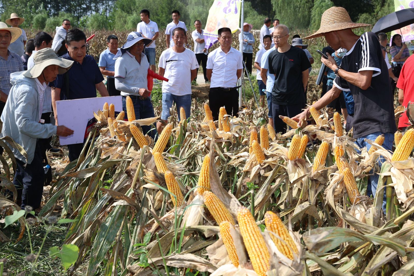 本网(胡飞)讯 8月21日,襄阳市农科院和湖北田管家农业公司邀请有关专家,对联合引进的高产玉米新品“黄金粮MY73”进行籽粒实收测产。现场实收1.78亩,鲜籽粒1946.41公斤,水分含量30.47%,按照国家标准折算后亩产为1726斤。