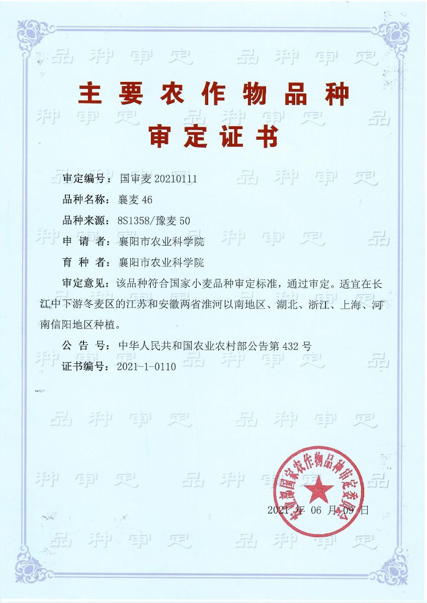本网(张道荣)讯 近日,湖北省农业农村厅关于发布审定农作物新品种的通告,由襄阳市农科院所选育的7个小麦新品种(襄麦39、襄麦78、襄麦65、襄麦85、襄麦95等)通过湖北省审定。