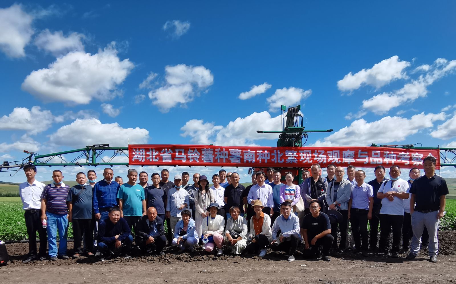 本网(方治国)讯 8月8日,由湖北省马铃薯产业技术体系举办的马铃薯南种北繁基地现场观摩与品种考察活动在内蒙古呼伦贝尔举行。湖北省农技推广总站领导、湖北省马铃薯产业技术体系专家及代表、省内农技部门负责人及代表、企业负责人及种植大户共计40余人参加会议。我院党委书记李力带领马铃薯团队参会。