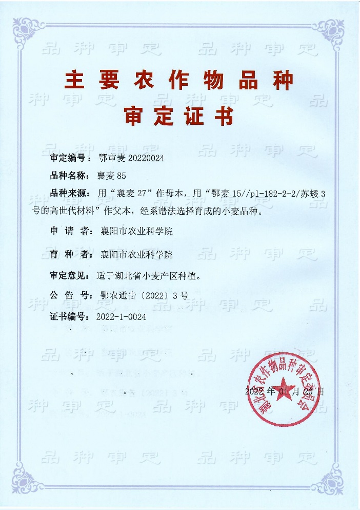 品种审定(鉴定)创历史之最。全年通过审定(鉴定)农作物新品种11个,其中:小麦新品种7个,水稻新品种2个,玉米和芝麻新品种各1个。另外,还有3个小麦新品种通过了湖北省农作物品种审定委员会的初审。年度通过审定(鉴定)品种数量首次达到两位数,创建院以来年度审定品种数量之最。