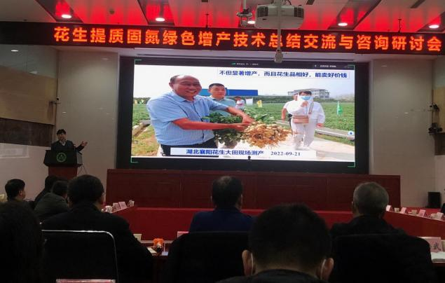 本网(朱梦洁 王盾)讯 为了贯彻落实中央1号文件精神和中央农村工作会议决策部署,加快推动花生ARC微生物菌剂提质耦合绿色增产新技术新成果转变成现实生产力,2月11日至12日,全国花生提质固氮绿色增产技术总结交流与咨询研讨会在中国农业科学院油料作物研究所召开。农业农村部相关司局及全国农业技术推广服务中心领导、张新友院士、李培武院士、国家花生产业技术体系相关岗位科学家、综合试验站站长、参与试验示范的各省市农科院和农技推广中心、中国农科院油料作物研究所等科研单位领导专家参加了此次会议。我院农产品安全团队和花生综合试验站受邀参加会议并做了示范效果汇报。