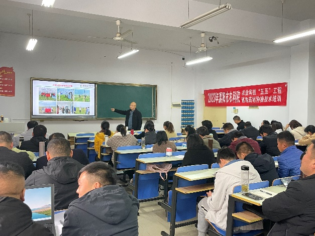 本网(龚泽丹 黄桂兰)讯 2月28日,院中药材课题组受邀到襄阳市职业技术学院为“一村多名大学生计划”班学员讲授道地药材种植技术,来自鄂西北各地基层“两委”接班人、致富带头人、创业合伙人等60多名学员聆听了讲座。