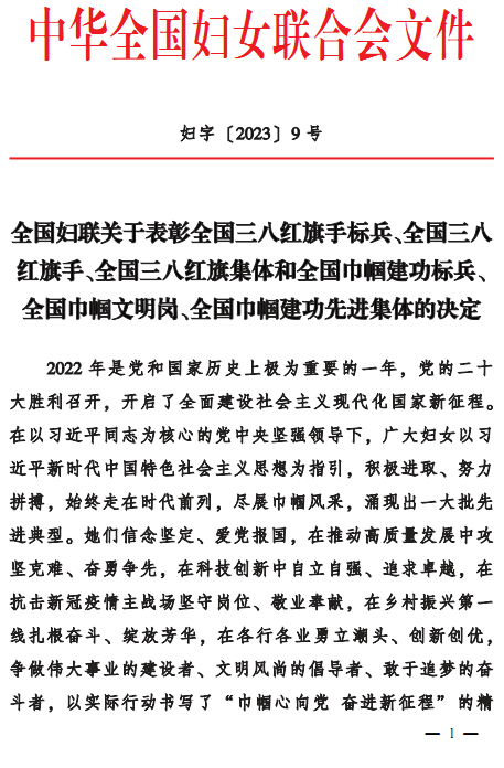 我院荣获全国巾帼文明岗称号