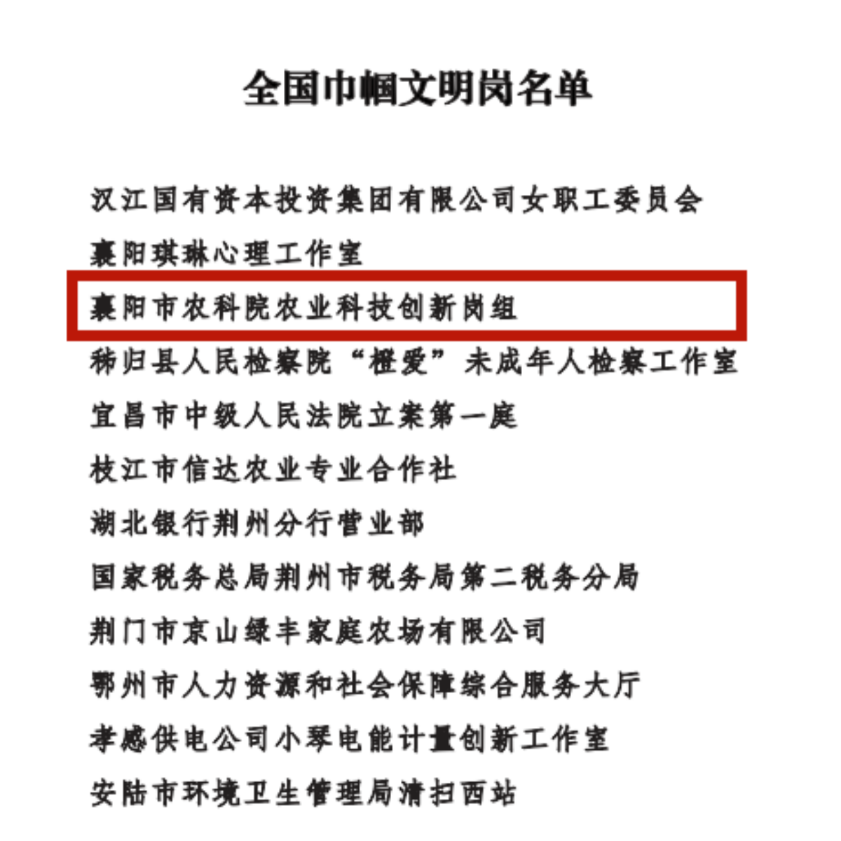 本网讯 近日,根据全国妇联公布的《关于表彰全国三八红旗手标兵、全国三八红旗手、全国三八红旗集团和全国巾帼文明岗、全国巾帼建功标兵、全国巾帼建功先进集体的决定》,我院农业科技创新岗组荣获全国巾帼文明岗称号。