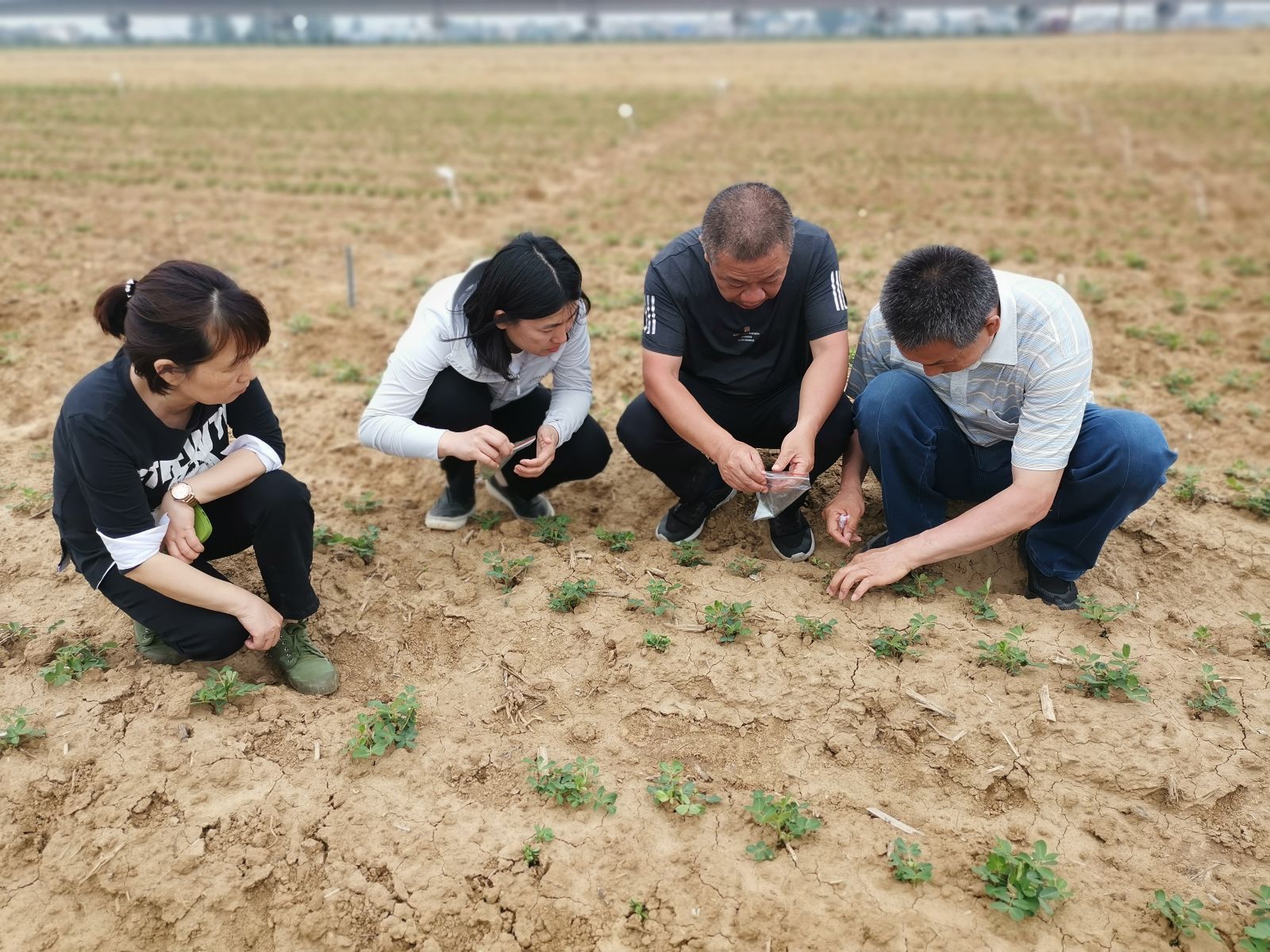本网(油料所 郭凯)讯 5月25日,国家花生产业技术体系虫害防控岗位专家赵丹教授一行4人来襄调研指导花生病虫害防控试验示范工作,并深入襄州区古驿镇50亩花生病虫害综合防控示范基地,指导花生科学拌种和机械播种,赵丹教授对试验基地花生芽前芽后除草、合理化控、蛴螬等虫害绿色防控提出了科学指导方案。在朱集花生试验基地,赵教授一行察看了我院花生春播试验田间情况,调研评估了花生不同品种苗期蓟马危害程度,对微生物防控花生地下害虫相关试验和花生苗期管理提出了宝贵意见,并对试验站承担体系工作取得的成效给予了充分肯定。我院花生试验站站长蒋相国、团队成员李红梅、郭凯陪同调研。