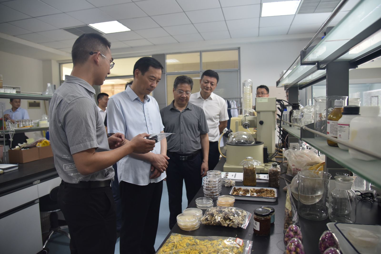 在团山基地,胡海洋实地察看了果树、农产品安全、蔬菜、玉米、水稻、新品种测试、农产品加工研发、中药材等团队的在田试验,现场听取了各团队负责人关于品种选育、技术创新、示范推广等情况汇报。在生物技术实验室,胡海洋一行认真了解了黄曲霉毒素降解、珍稀食用菌菌加工、芳香植物提取、单倍体育种等技术,对农科院的科技创新工作给予高度肯定。