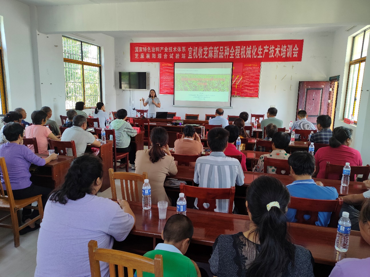在随后的培训会上,国家特色油料体系苗红梅研究员围绕宜机收芝麻研究发展,就豫芝ND837和豫芝NS610品种特征特性做了全面讲解。中国农科院油料作物研究所张艳欣以芝麻渍害综合防控技术为题,从渍害发生危害及规律、芝麻耐渍性鉴定及芝麻渍害防控技术等方面做了深入浅出的讲解。