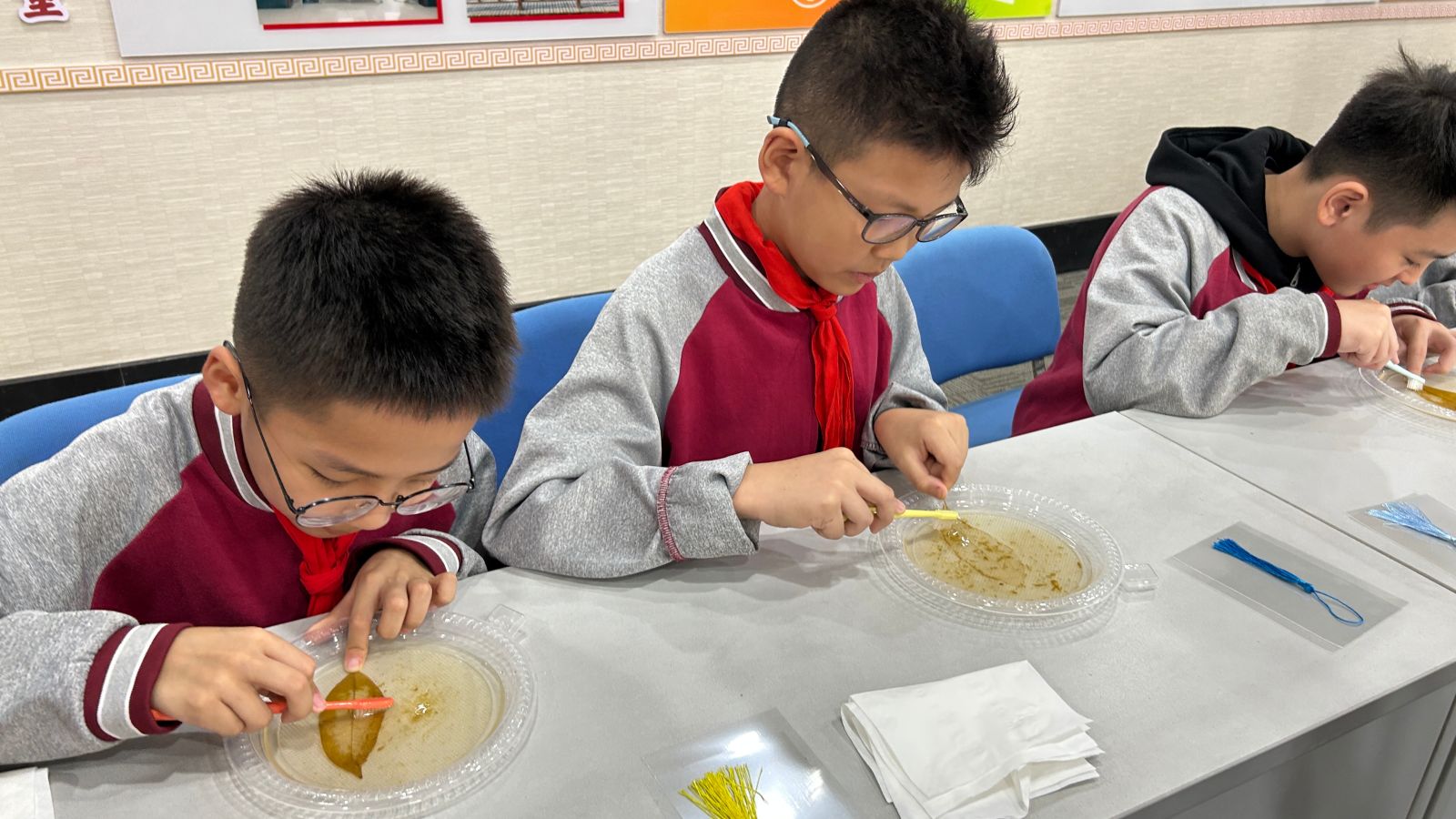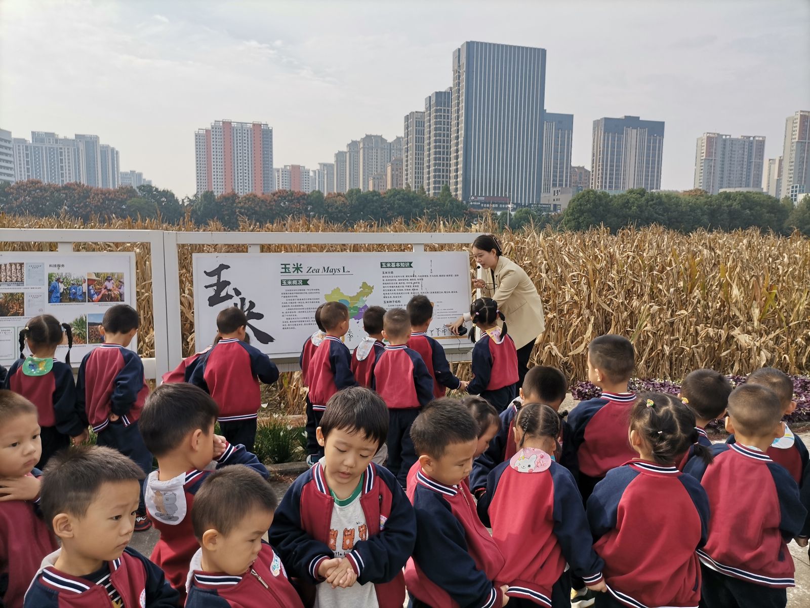 春种一粒粟,秋收万颗子,秋天市农科院的试验基地满是“黄金甲”。100名小学生在我院科普讲解员的带领下分别参观了粮食作物、蔬菜、植物新品种测试、芳香植物试验田、设施大棚和温室。期间我院科研人员分别为同学们现场讲解了玉米、红薯、水稻、芳香植物和植物新品种测试相关的科普知识。随后在综合楼内,科普讲解员向同学们展示并介绍了我院主要科研成果。最后以动画的形式向幼儿园的小朋友们介绍了“一粒米的成长历程”,以学习制作叶脉书签的过程带领小学生了解叶子的“奥秘”。