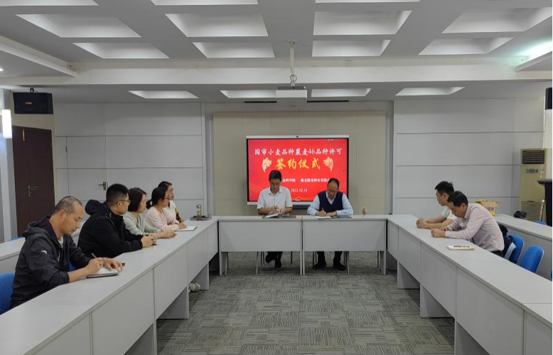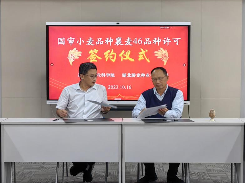本网(粮作所 王鑫)讯 10月16日,襄阳市农业科学院与湖北腾龙种业有限公司成功举行国审小麦品种襄麦46品种许可签约仪式。市农科院副院长凌冬研究员、湖北腾龙种业有限公司董事长加春光以及小麦团队成员参加会议。