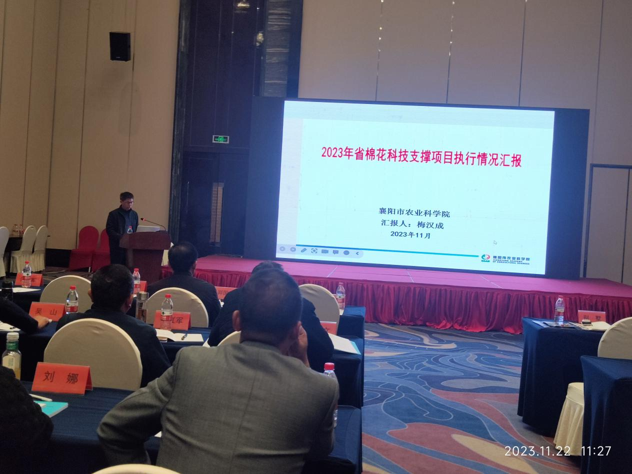 本网(经作所 付永红)讯 11月21-23日,副院长梅汉成、正高级农艺师带领院经作所人员赴孝感市,参加了由湖北省农业技术推广总站主办的全省玉米棉花试验总结交流暨技术培训会中的棉花试验总结交流环节。会议由省推广总站汤颢军正高级农艺师主持,主要内容为全省棉花试验暨培训总结。来自省农业农村厅、省推广总站、中油所、华中农业大学、省农科院和各地市州县的农科院、农业农村局、推广技术中心的110余人参加了本次会议。
