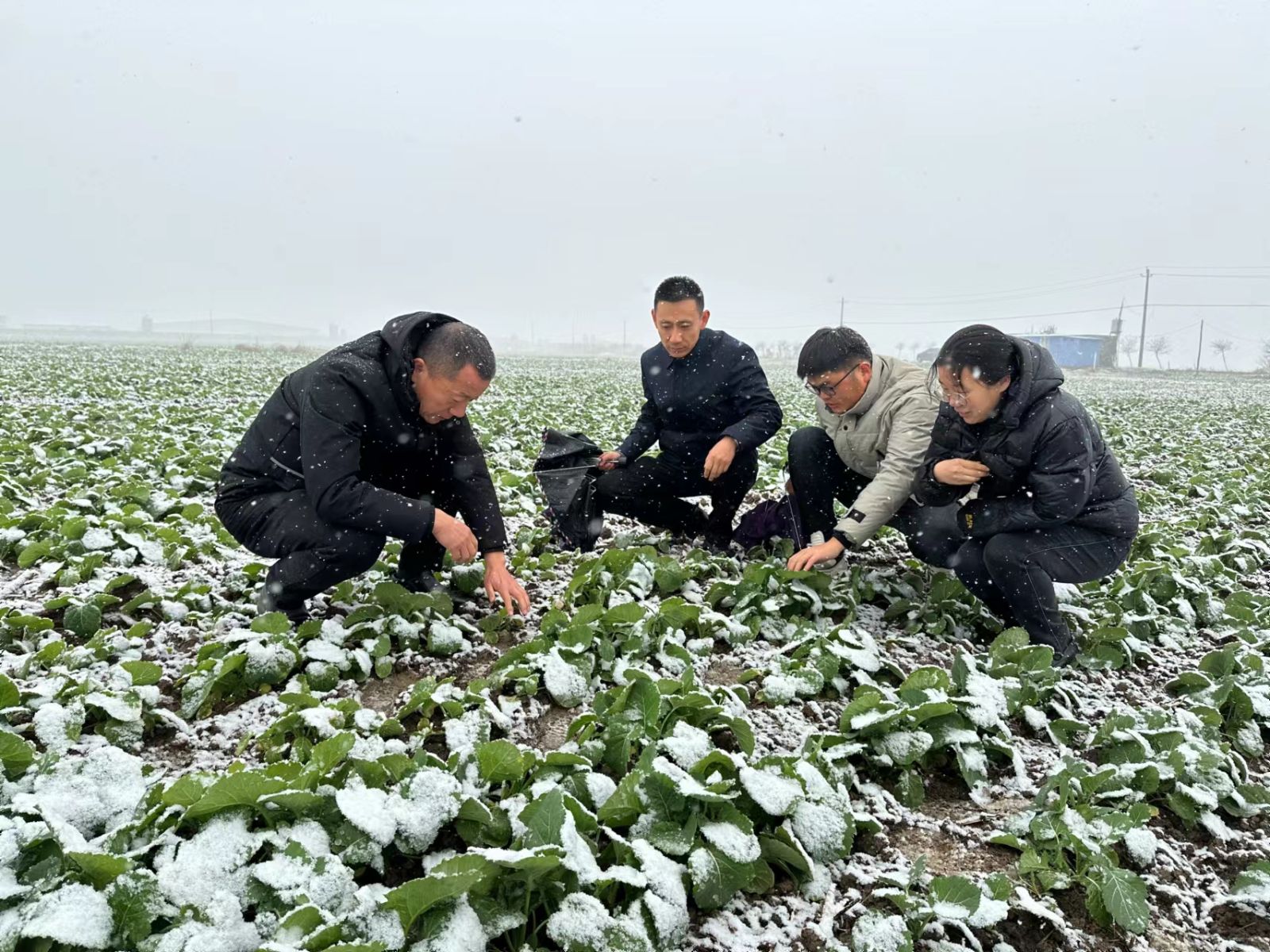 目前,各基地油菜根系逐渐发达,叶片增厚,抗寒能力有所增强,但受长期阴雨天气影响,播期推迟导致油菜多处于5-7叶期,有一定的冻害风险。我院技术人员就基地沼液施用后土壤盐碱化和渍害导致油菜生长缓慢和病虫害增多的现象,从加强病虫害防控、肥料科学追施、沼液合理灌溉等方面提出了相应的建议和措施,并探讨了猪沼液减量化和资源化处理的创新模式。