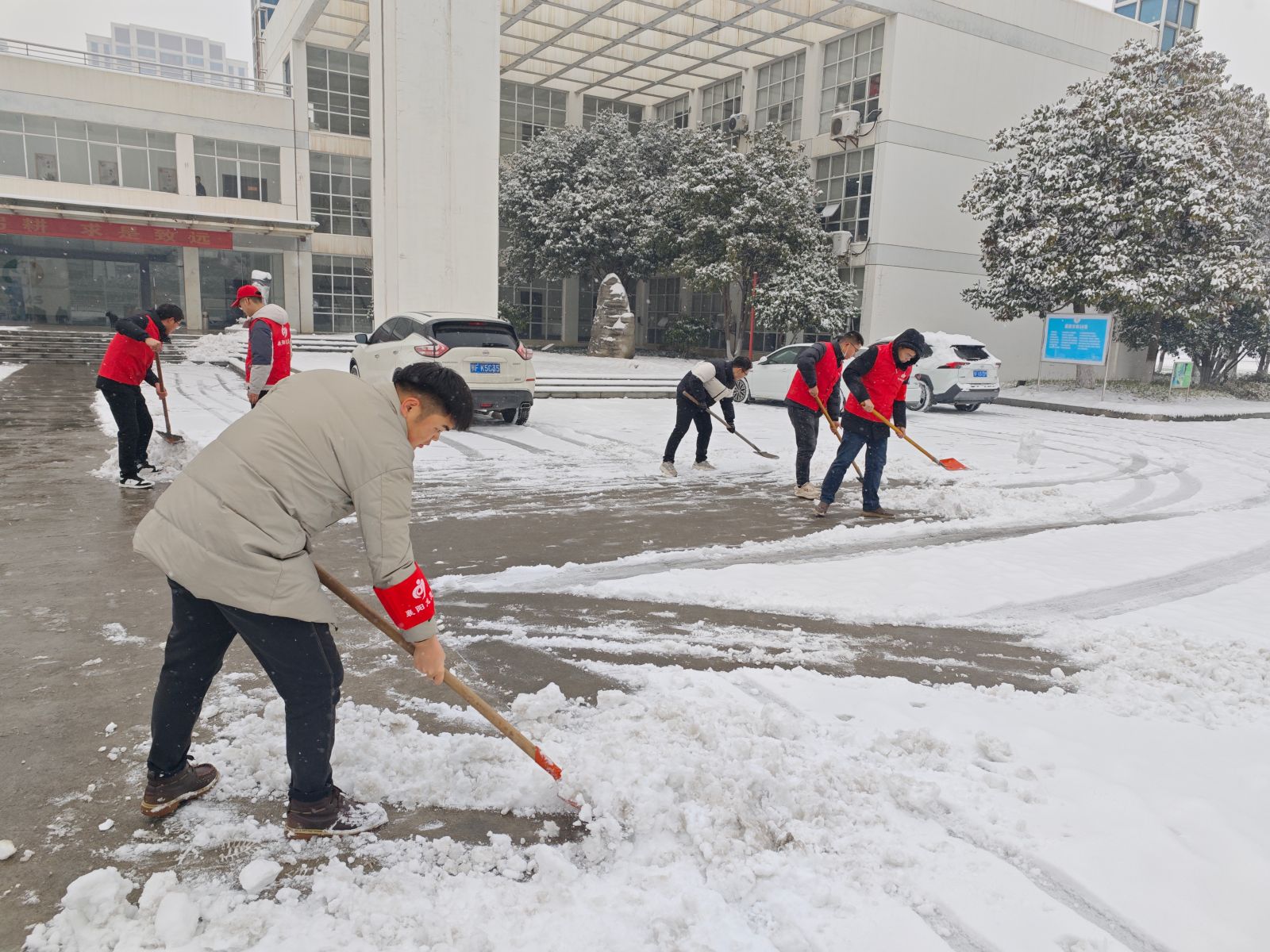 活动中,大家积极响应、干劲十足,手持铁锹、扫帚等工具,清除院内外积雪。“志愿红”成了一道靓丽的风景线,在担当奉献中展现青春风采。