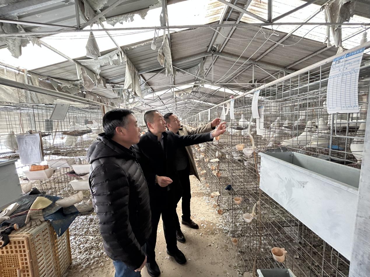 上午,畜牧兽医团队专家蒋辉胜查看了湖北贝迪鸽业有限公司育雏孵化室、青年鸽飞棚和饲养大棚,现场对鸽子育雏、饲养进行技术指导,提醒养殖户做好新城疫、肠炎、毛滴虫病等呼吸道疾病及春季鸽类易发生疾病的防控工作。
