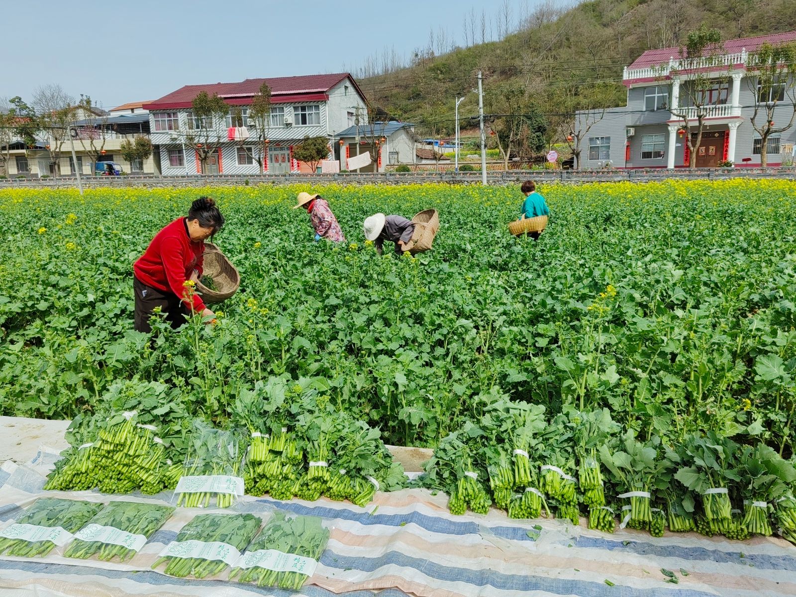 油菜团队到保康马良开展“科技闹春耕”菜薹采摘活动