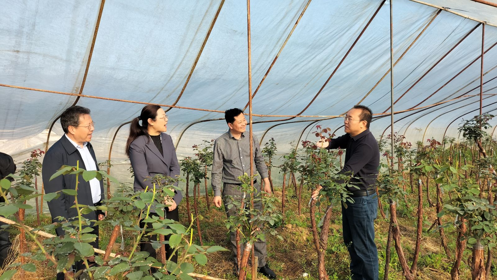 12日,杨园园一行来到了襄城博扬农业科技公司月季花海基地,查看了企业花卉种植、管理情况,对月季扦插、病害防治等进行技术指导。省、市农科院领导与企业负责人进行了座谈交流,了解企业三产融合、辐射带动农民致富等情况。座谈中,冯鹏肯定了企业深耕花卉事业的做法和精神,希望月季花海进一步打造品牌效应,进行技术创新,做好园区生态培养和联农带农工作。杨园园赞扬了企业负责人返乡创业,带动农民致富的农业情怀和家乡情怀,对园区一二三产业发展取得的成绩给予高度肯定。下一步希望省、市农科院和月季花海在人才、平台、项目申报等方面加强合作,让襄阳月季花海借助科技的力量,成为湖北的一张名片,飞得更高、走得更远。