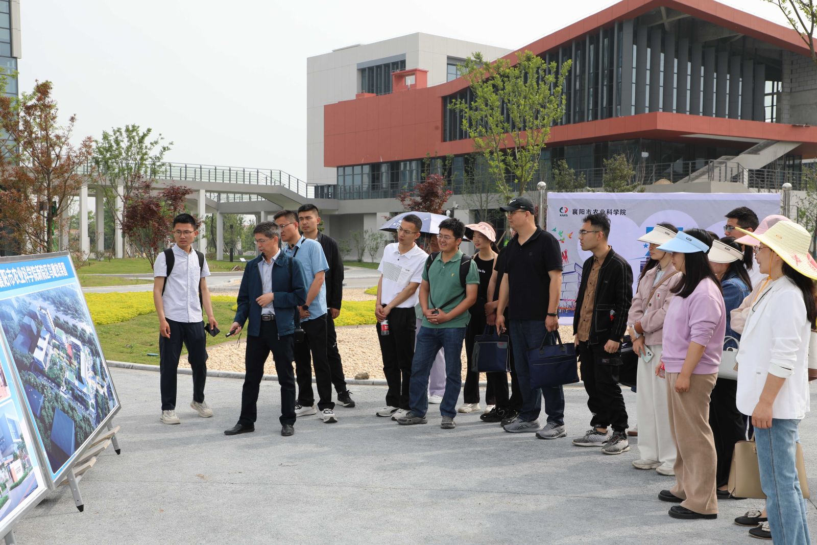 首先大家参观了正在进行内装修的新院区办公区,本阶段特邀副院长梅汉成代表华农襄阳书院和农科院新院区建设项目专班进行了讲解。梅院长围绕新办公区的区位交通、设计理念、功能分区、楼栋和楼层功能设计、试验基地灌溉条件、建设进度、远景规划等进行了详细的介绍。