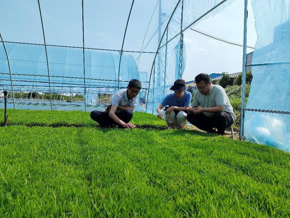 在湖北谷大生态农业开发有限公生产基地,水稻团队与公司负责人李道军交流了推荐品种表现和今年生产布局,对优质稻育苗进行技术指导,对后续工作提出了几点建议,一是要及时栽插,秧龄不超过25天为宜。二是要分品种集中连片种植,便于生产管理。三是要加强科学管理,按照《优质稻种植技术标准》开展水肥运筹和病虫害综合防治,以提高稻米品质。