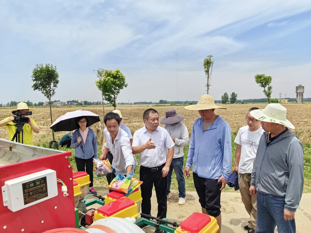 6月3日上午,湖北省襄阳市襄州区古驿镇新庄村一块农田里摆放的1台大型农业机械格外醒目,围观群众对现场停放的这台过去从未见过的新式播种机充满好奇,热烈讨论着。这是襄阳市花生-玉米宽幅间作高效复合种植模式及机播演示观摩会的现场。