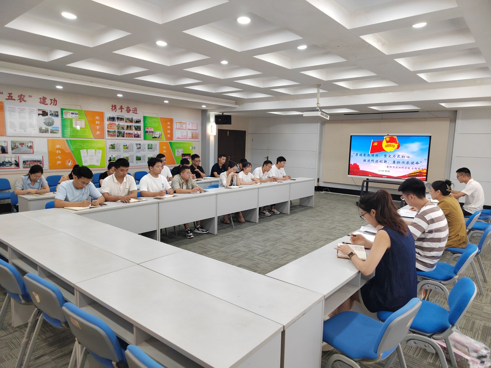 7月5日,为深入贯彻党的二十大对建设农业强国的部署,以及习近平总书记在同团中央领导班子集体谈话时的涉农重要讲话精神,进一步激励我院青年积极投身农业发展大局,院团委特举办“厚植爱农情怀,坚定为农初心,推进科技创新,勇担兴农使命”主题团日活动,副院长赵翠荣、院共青团成员与青年代表参会。