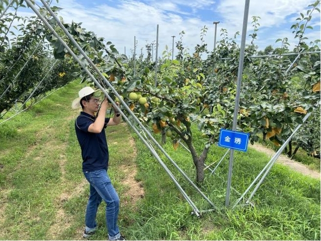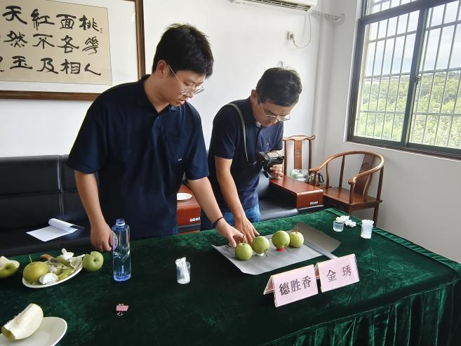 7月18日,受农业农村部植物新品种测试中心委托,襄阳分中心测试员卢阳、周志豪以审查员身份赴武汉对湖北省农科院果茶所申请的梨品种“金琇”执行DUS测试现场考察任务。