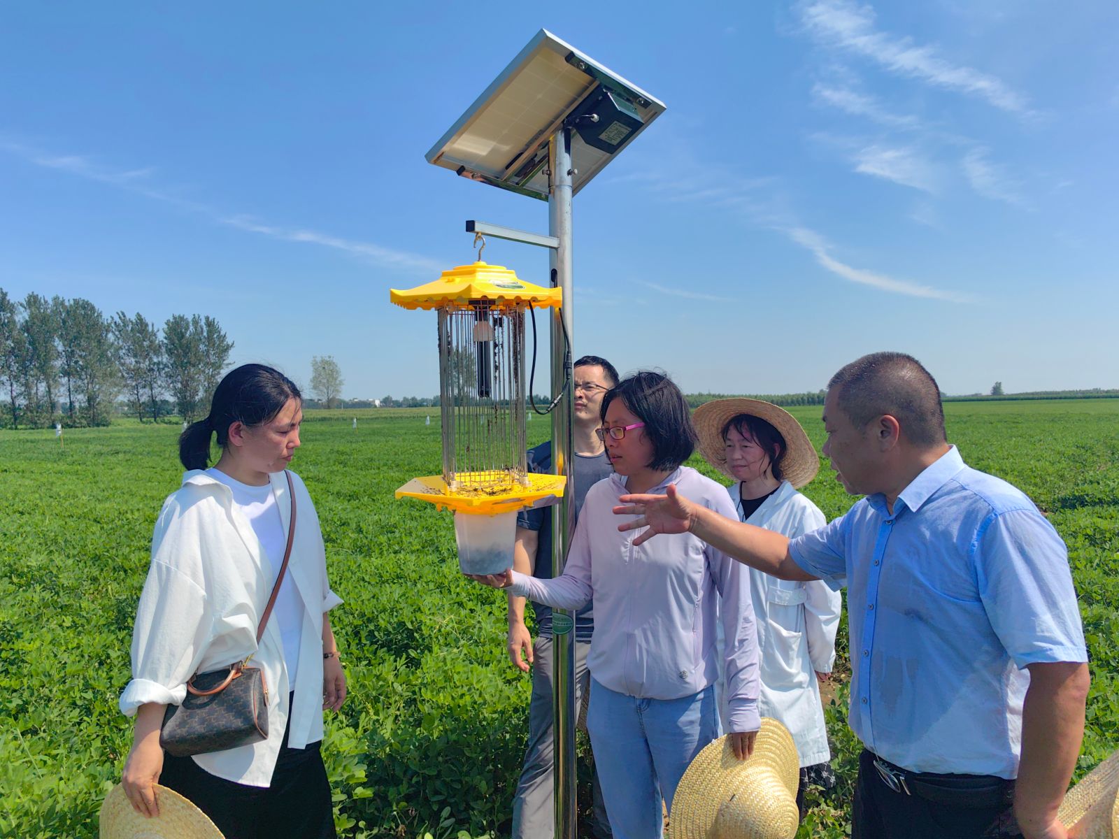 7月22日,国家花生产业技术体系生物防治与综合防控岗位科学家、山东省花生研究所曲明静研究员,国家花生产业技术体系虫害防控岗位科学家、河北农业大学赵丹教授一行来襄调研指导花生病虫害防控工作。花生团队全体成员陪同调研。