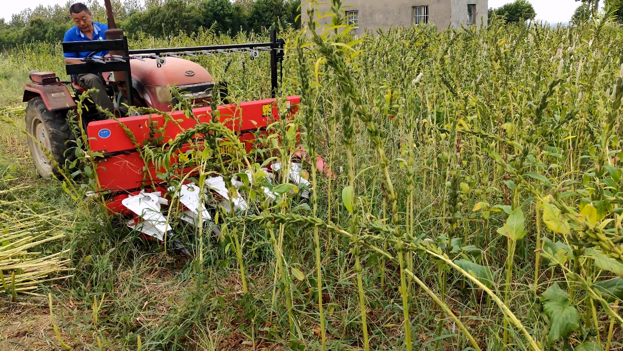 近年来,襄阳市农科院芝麻团队一方面引进宜机收芝麻品种开展联合机械化收获示范推广,另一方面针对本地优质高产芝麻品种和当地复杂地理条件积极探索芝麻机械化分段收获技术。