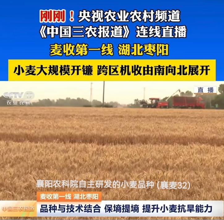 5月17日,央视农业农村频道报道枣阳市七方镇小麦夏收工作。襄阳市农科院小麦团队指导枣阳顺辉农机合作社种植自主研发的优质中强筋小麦品种襄麦32,在今年长时间高温干旱且没浇水的情况下,亩产......