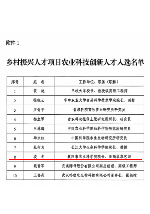 近日,省农业农村厅发布通知,我院凌冬研究员成功入选2025年度湖北省“楚天英才计划”乡村振兴创新人才,系全省地市州唯一入选者。...