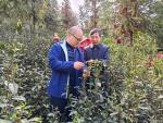 在五山镇秦家畈村茶叶专业合作社,茶叶团队一行查看茶树发芽情况,并与合作社负责人季广成就采摘标准和当前...